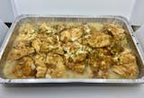 1 tray tossed salad, large sandwich platter, 1 tray garlic knots, ½ tray meatballs, 1 full tray penne vodka, 1 full tray chicken francese, full tray eggplant parmesan, 1 full tray cavatelli & broccoli.