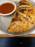 Pizza pocket filled with pepperoni, ham and peppers served with marinara sauce.