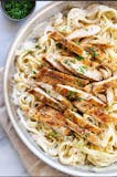 Pasta served with your choice of sausage, chicken or shrimp with Alfredo and green chili sauce.