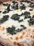 White ricotta base, mozzarella cheese, spinach, fresh garlic, topped with parmesan cheese.