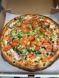 Onions, green peppers, mushrooms, garlic, fresh tomatoes and extra cheese.