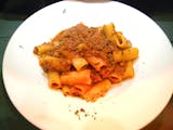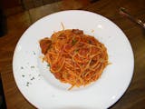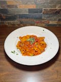 Pancetta, onions, and garlic in a spicy tomato sauce.