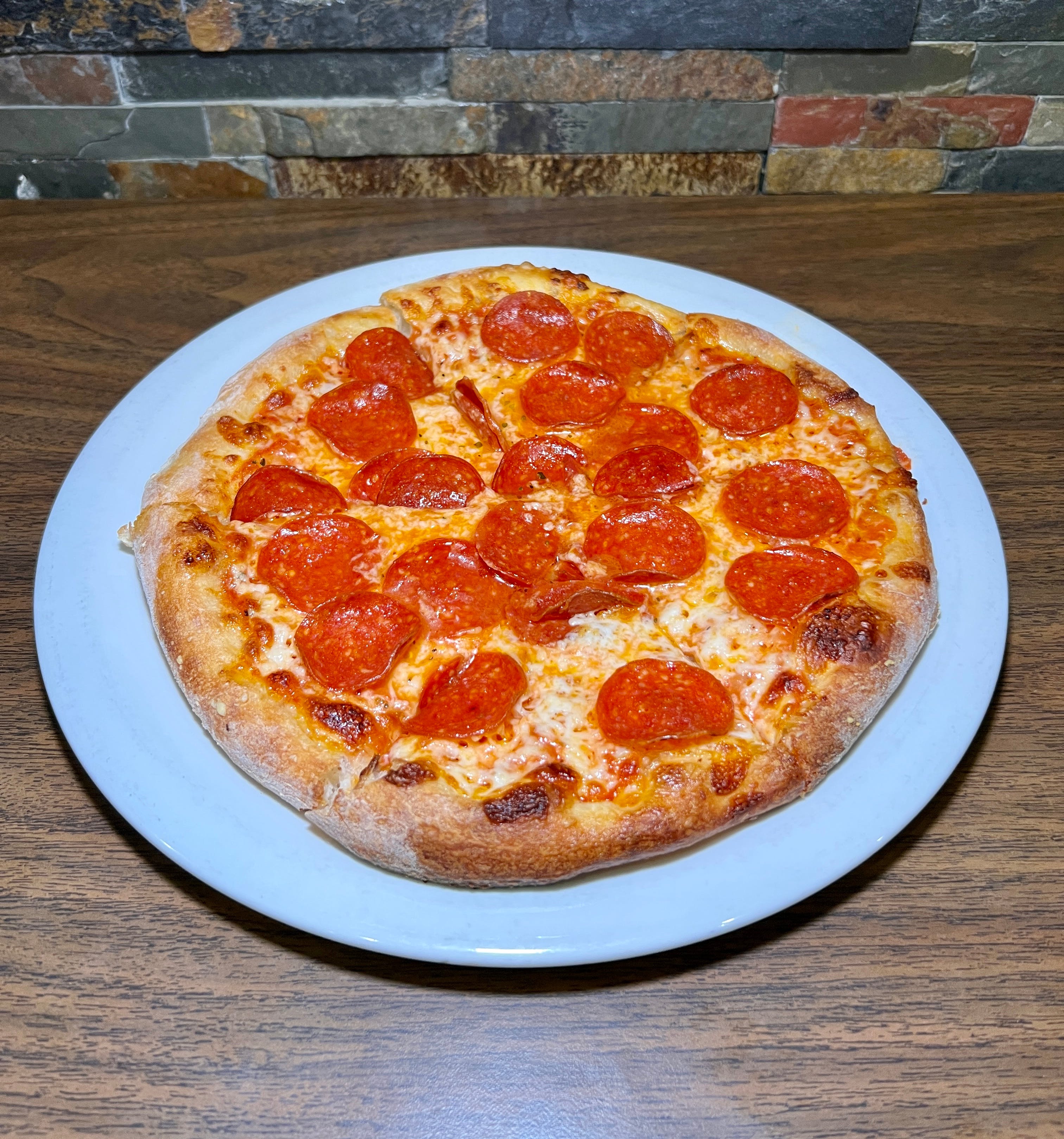 A Small Cheese Pizza. You Can add Toppings or Just Have Cheese.