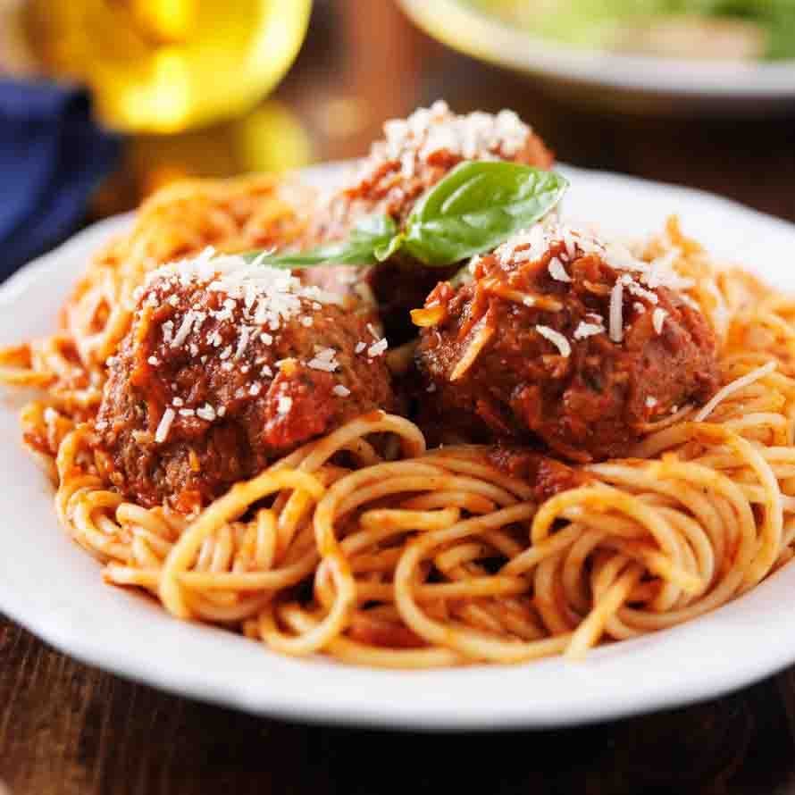 Spaghetti topped in our homemade meatballs. Served W/ Garlic Bread & Dinner Salad