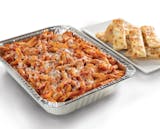 Penne Rigati and Italian Sausage tossed in our Homemade Red Tomato Sauce. Topped with Mozzarella Cheese, basil seasoning, and served with a regular cheezee garlic bread. Serves about 10.