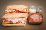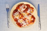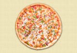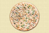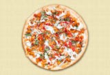 White sauce base. Mozzarella cheese, crispy chicken, marinara sauce, ricotta cheese, parmesan cheese & fresh basil.