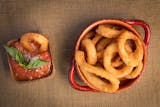 White base sauce. Mozzarella cheese, crispy chicken & hot sauce.