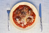 White sauce base. Mozzarella cheese, eggplant, marinara sauce, ricotta cheese, parmesan cheese & fresh basil.
