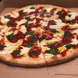 Fresh mozzarella cheese, sweet Italian sausage, and broccoli rabe.