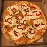 Fresh tomatoes, fresh mozzarella, roasted red pepper and pesto sc drizzle with balsamic glaze.