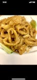 Fried calamari tubes only with a wasabi teriyaki sauce, with cashews and sliced green apples and a hint of lime juice