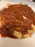 Oversized Rigatoni pasta, tossed with ricotta cheese and old-fashioned meat sauce (pork and beef) served with three of nana’s meatballs.