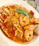 Clamshells stuffed with shrimp, scallops & clams, topped with clam juice & baked golden brown.