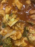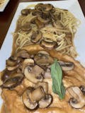 Cubes of tender veal, tossed in a veal stock Marsala sauce with mushrooms, red, yellow, and green peppers, onions, prosciutto and garlic, then covered with mozzarella, served on a bed of fettuccini pasta.