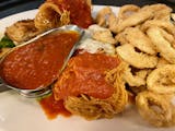 Fried capellini, baked clams, eggplant rollatini, fried calamari.