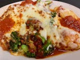 Two chicken breasts rolled and stuffed with eggplant, prosciutto and mozzarella cheese, served with a lemon, wine and butter sauce with your choice of pasta.