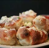 Topped with extra mozzarella cheese, spotted with white whole milk ricotta, grated romano cheese and a dash of fresh garlic and parsley.