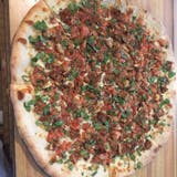 Double crust. Pepperoni, sausage, meatballs, onions, peppers & fresh garlic.