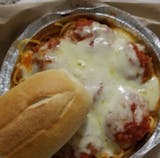 Topped with lasagna noodles, mozzarella cheese, tomato sauce and ground beef.