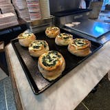 A classic snack, our garlic knots are strips of pizza dough tied in a knot, baked, and then topped with melted butter, garlic, and parsley.