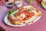 Breaded chicken and homemade pasta tossed in marinara sauce and covered with cheese. Supersized for your party.