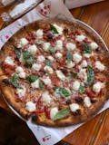 Homemade mozzarella, crushed Italian plum tomatoes, fresh basil, garlic & oil with Pecorino Romano grated cheese.
