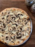 Mozzarella cheese, mushrooms and truffle oil. No tomato sauce.