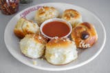 A classic snack, our garlic knots are strips of pizza dough tied in a knot, baked, and then topped with melted butter, garlic, and parsley. Served with a side of sauce.
