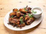 Shiitake, gorgonzola, red onion, pumpkin seed, garlic.
