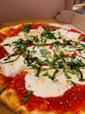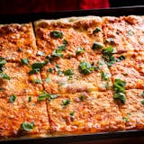 Thin crispy Sicilian with fresh mozzarella, basil, oil, tomato sauce, and parmesan cheese.