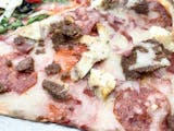 Meatballs, beef pepperoni, turkey bacon, cheese & sauce.