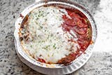 Breaded chicken and homemade pasta tossed in marinara sauce and covered with cheese.
