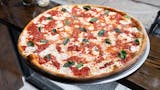 Tomato sauce, Fresh mozzarella, mozzarella, garlic, oregano.