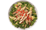 Grilled chicken, bacon, tomatoes, romaine, cheddar & lite ranch.