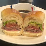 Ciabatta bread, horseradish aioli, arugula, tomato, red onion, provolone, au jus.