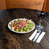 Romaine mix, prosciutto, parm reggiano, artichokes, roasted red peppers, garlic olives, & walnuts. Served with our signature Italian dressing.