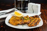 Pan fried tempeh, portobello mushrooms, roasted red peppers, parmesan white wine sauce served with choice of pasta or salad.