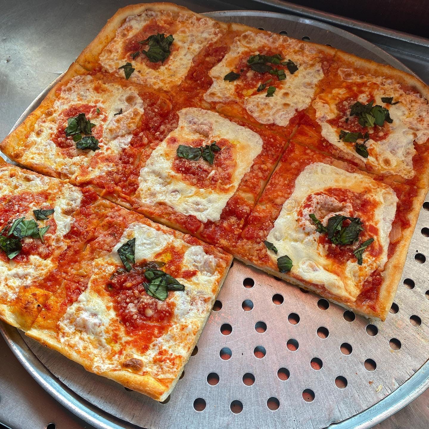Remember the smell of grandma's homemade sauce simmering on the stove when you walked into her kitchen? That's the same delicious smell and taste you'll get when you bite into our traditional Sicilian pizza topped with chunky tomato sauce with basil and garlic parmigiano cheese.