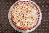 Classic cheese pie featuring tri-color topping: marinara, vodka and pesto sauces.