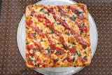 Thin grandma crust seasoned with broccoli, sautéed spinach, mushrooms and cherry peppers.