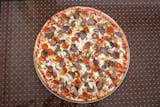 Pepperoni, sausage, meatballs, peppers, onions, mushrooms.