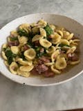 Orecchiette pasta with Hot sausage and Broccoli rabe garlic and oil.