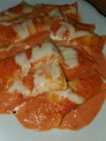 Mozzarella cheese and our homemade vodka sauce.