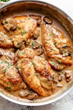 Chicken, mushrooms, marsala sauce and mozzarella cheese.