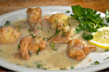 Shrimp in delicious buttery lemon and white wine sauce.