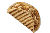 Peanut butter, banana, granola & honey in a toasted flatbread.