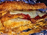Chicken cutlet, bacon, sautéed onions, yellow American, Russian dressing.