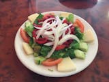 Mixed greens, tomato, cucumber, roasted red pepper, red onion, olives, provolone cheese.