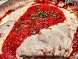 Chicken Cutlet, topped with Vodka sauce, Grana Padano fresh Basil
