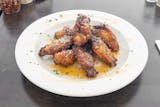 Roni cups, garlic, mozzarella topped with mike’s hot honey & Grana Padano